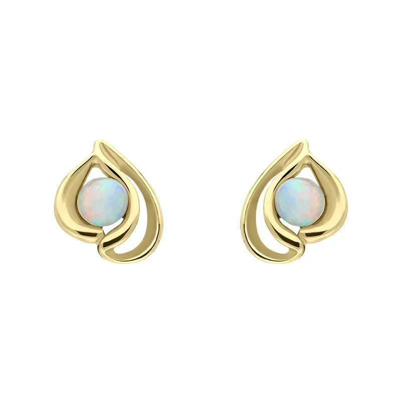 9ct Yellow Gold Opal Open Teardrop Stud Earrings E1907.