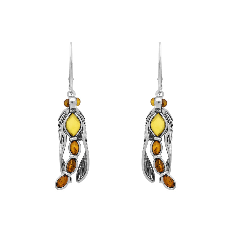 Sterling Silver Amber Dragonfly Drop Earrings E2425