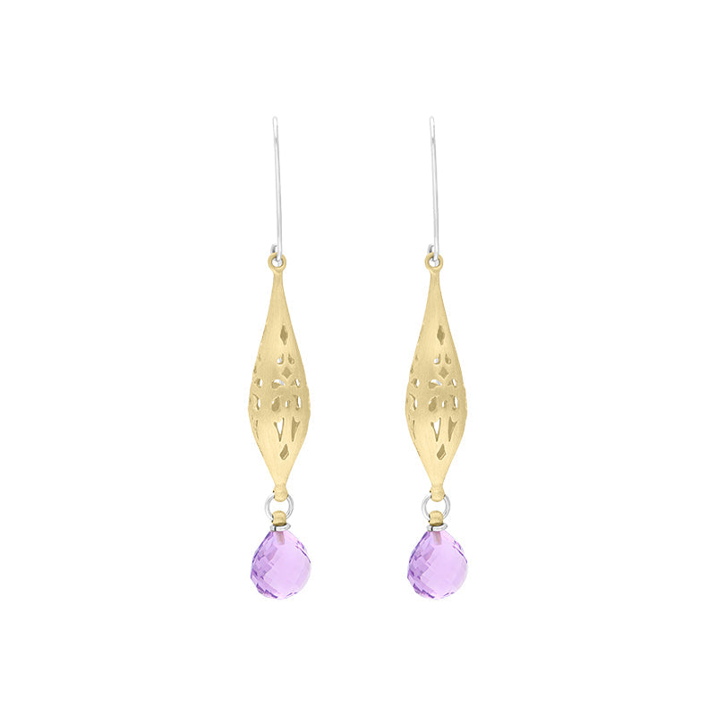 Sterling Silver Gold Plated Amethyst Drop Earrings D E1388.