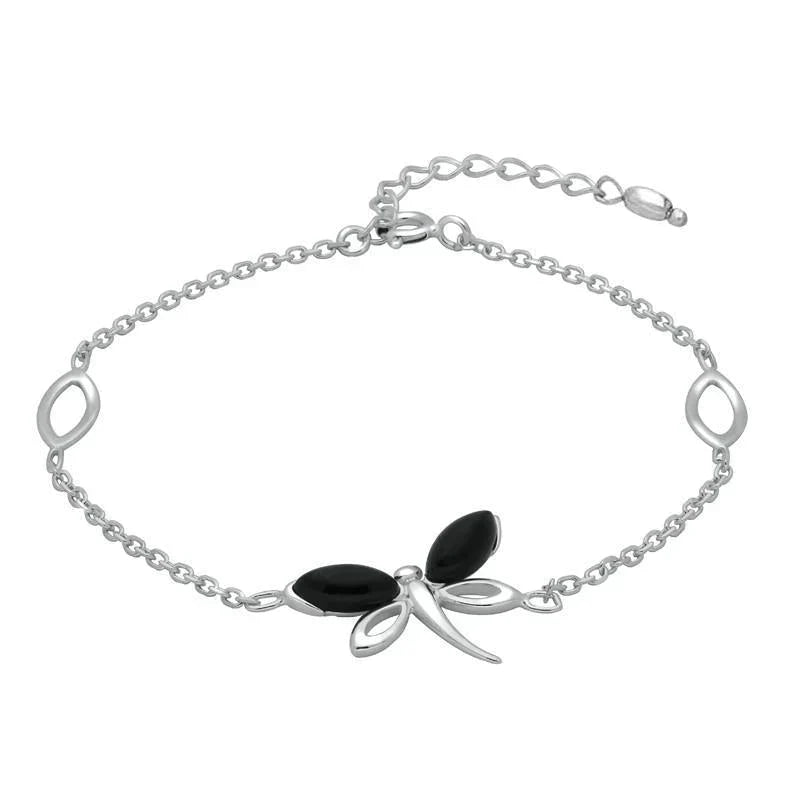 Sterling Silver Whitby Jet Single Butterfly Bracelet