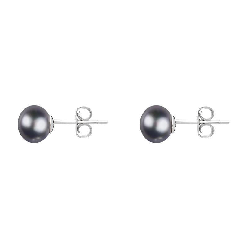 These classic black pearl stud earrings feature 4mm button shaped freshwater pearls, set on sterling silver post and butterfly fastenings.