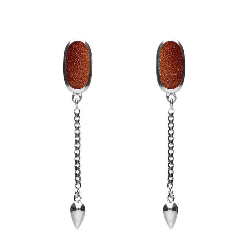 Sterling Silver Brown Goldstone Lineaire Medium Drop Stud Earrings