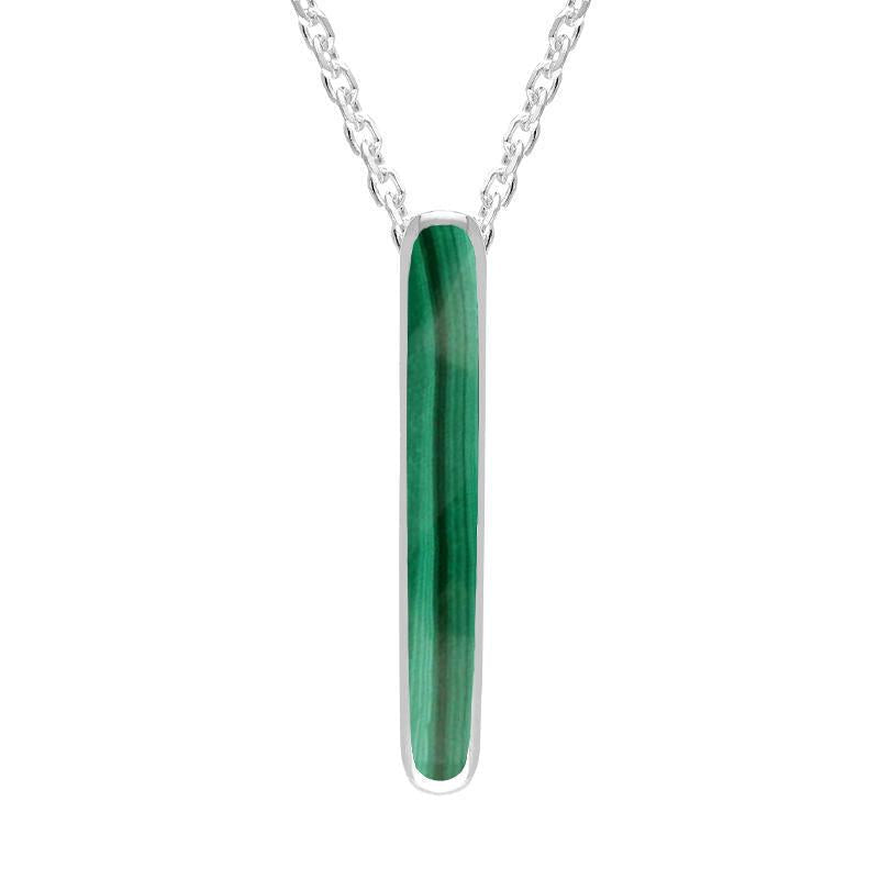 Sterling Silver Malachite Lineaire Drop Oval Necklace, P2989.