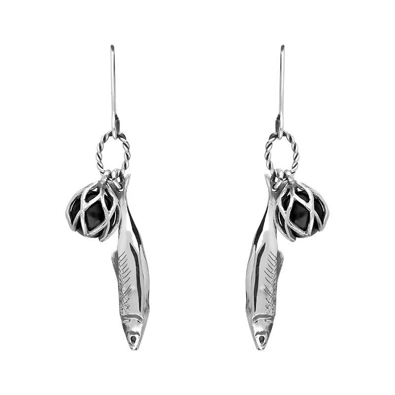 Sterling Silver Emma Stothard Silver Darling Whitby Jet Float Charm Hook Earrings