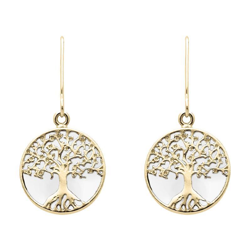 9ct Yellow Gold Bauxite Round Tree of Life Drop Earrings
