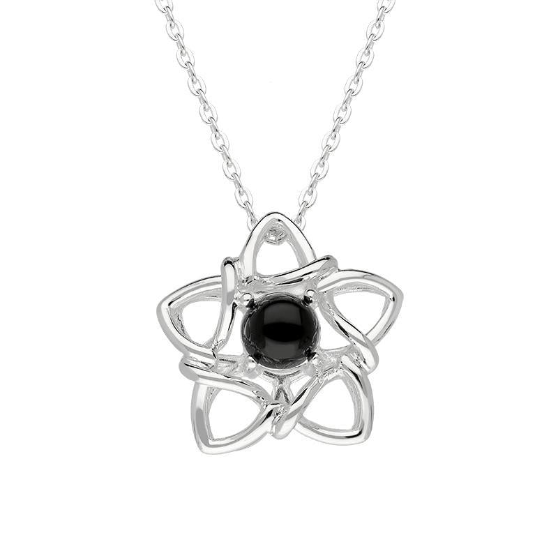 Sterling Silver Whitby Jet Open Star Flower Necklace, P3536C
