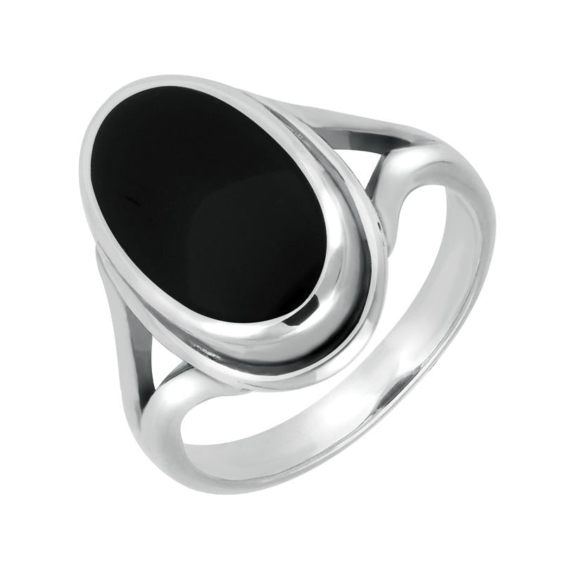 Sterling Silver Whitby Jet Oval Ridged Ring
