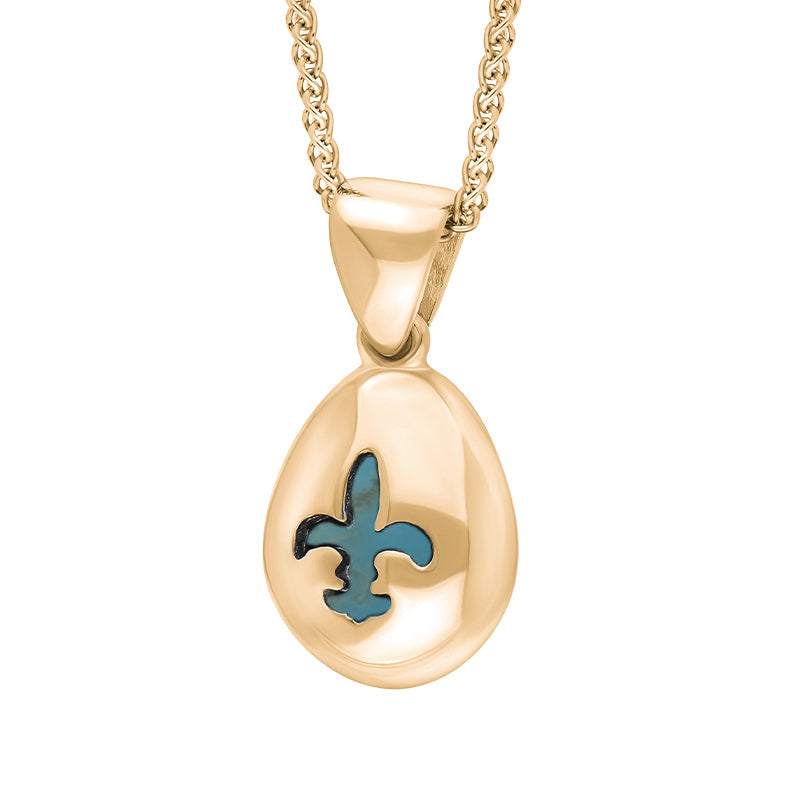 18ct Rose Gold Turquoise Fleur De Lis Pear Shape Necklace, P3645.