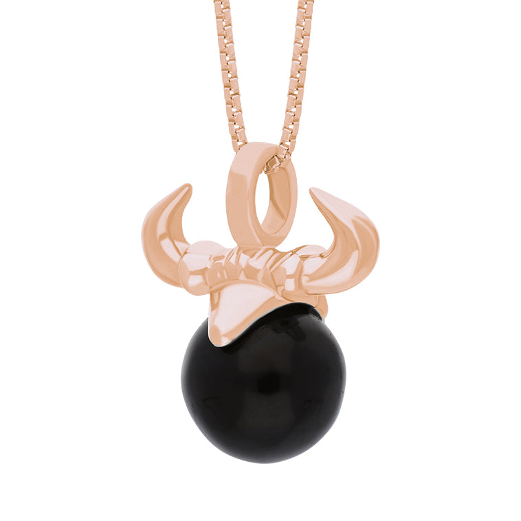 18ct Rose Gold Whitby Jet Zodiac Taurus 10mm Bead Pendant, P3621.