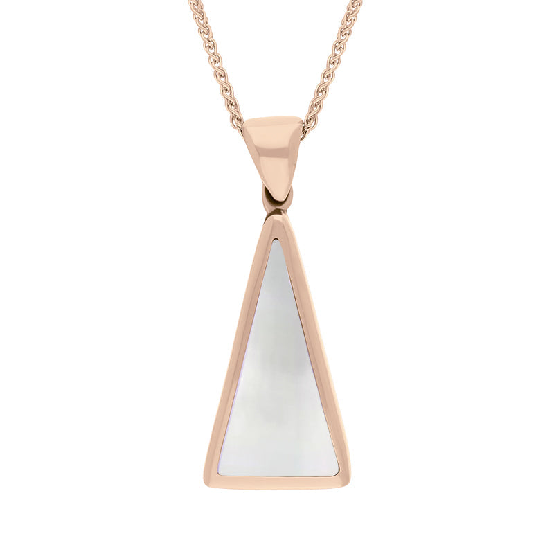 9ct Rose Gold Blue John Mother Of Pearl Small Double Sided Triangular Fob Necklace, P834.