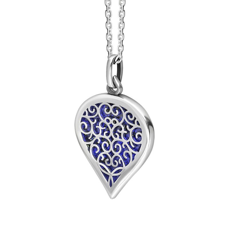 9ct White Gold Lapis Lazuli Flore Filigree Medium Heart Necklace. P3630.