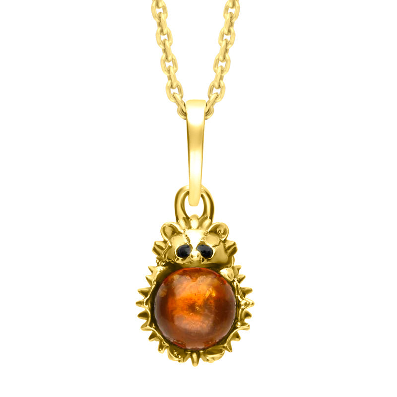 9ct Yellow Gold Amber Tiny Hedgehog Necklace, P3356