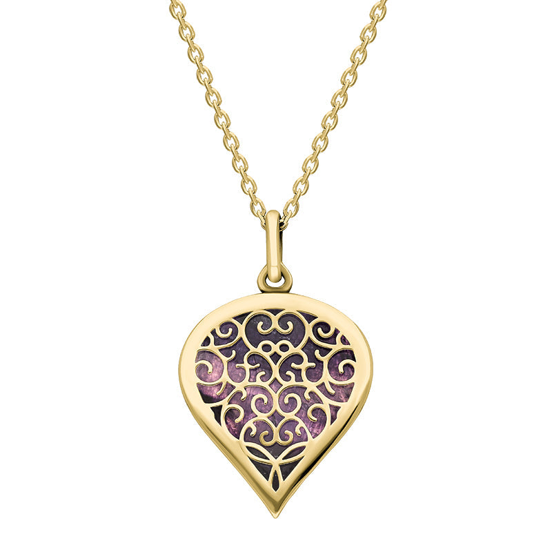 9ct Yellow Gold Blue John Flore Filigree Medium Heart Necklace. P3630.