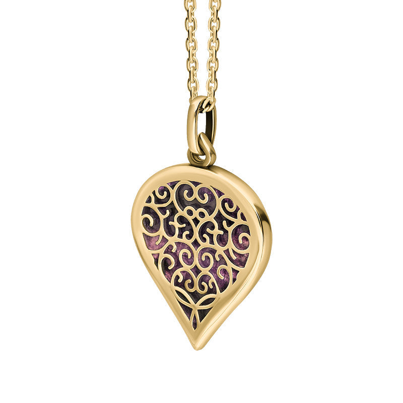 9ct Yellow Gold Blue John Flore Filigree Medium Heart Necklace