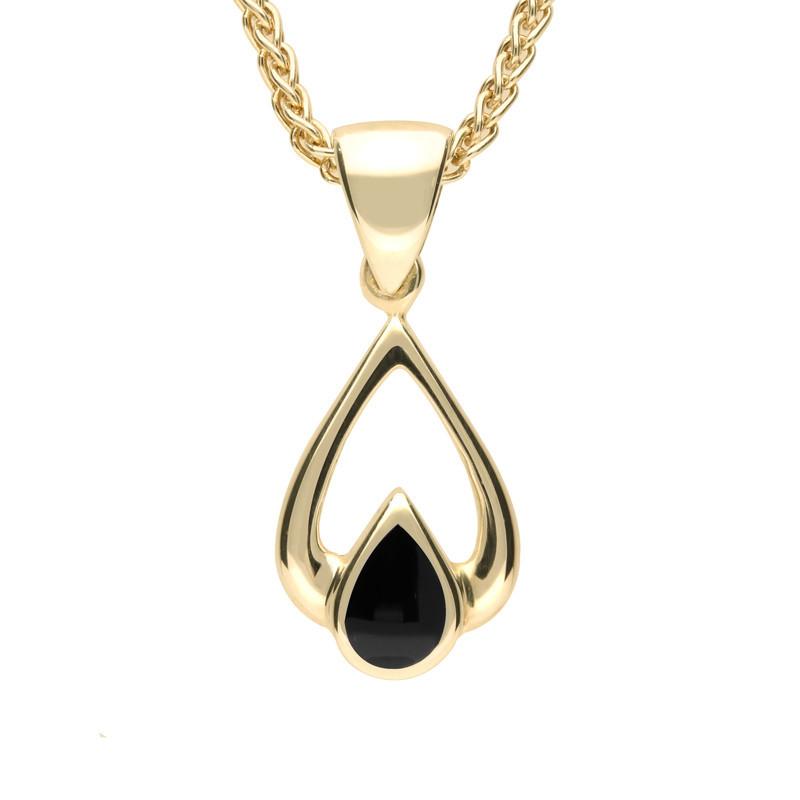 9ct Yellow Gold Whitby Jet Tear Drop Necklace
