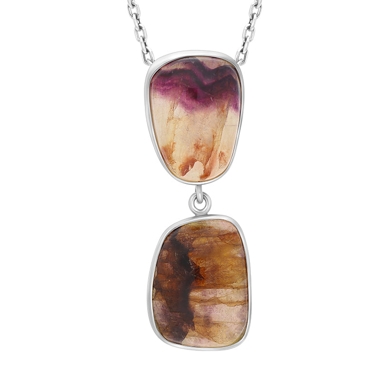 Sterling Silver Blue John Abstract Two Stone Drop Necklace D