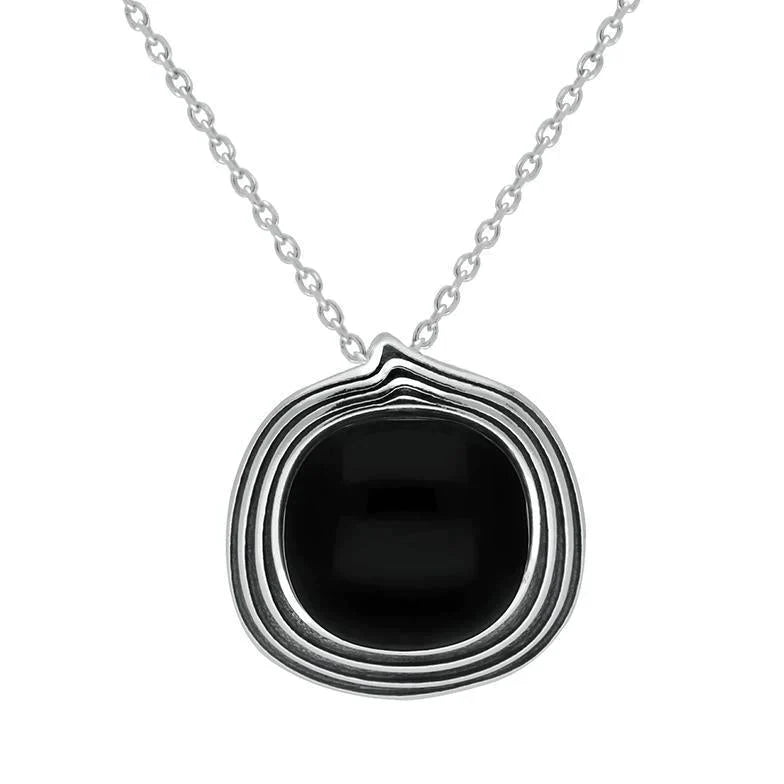 Sterling Silver Whitby Jet Cushion Stone Pattern Edge Necklace P3517