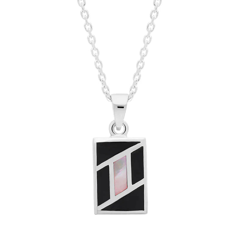 Sterling Silver Whitby Jet Mother of Pearl Oblong Necklace D