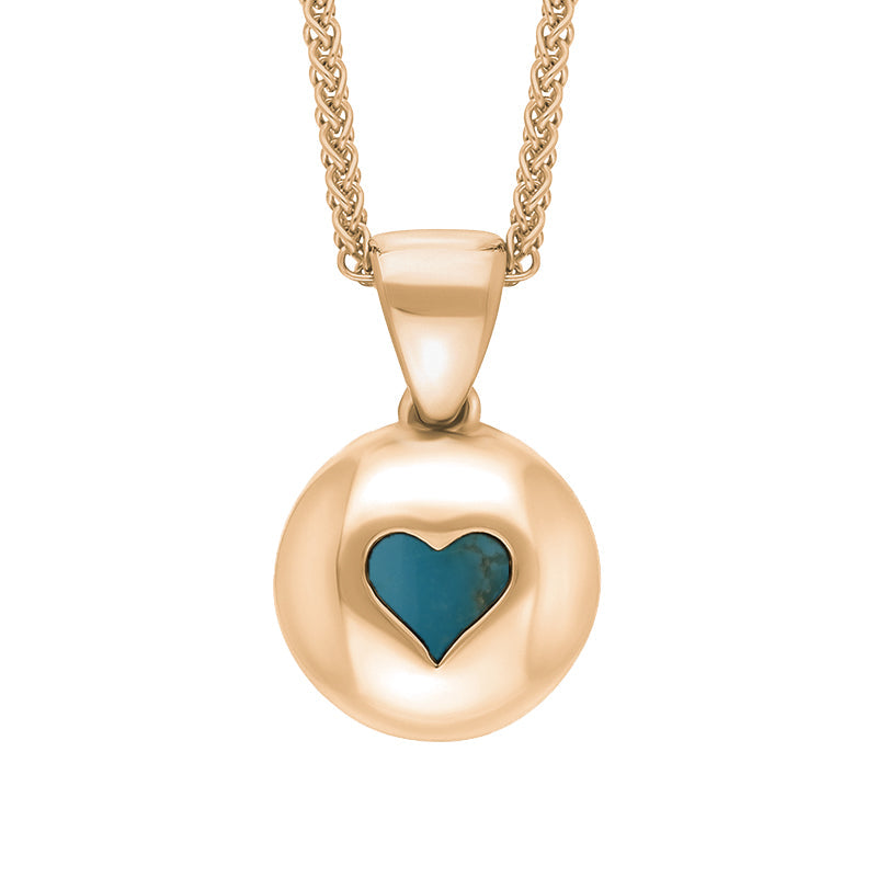 18ct Rose Gold Turquoise Heart Disc Necklace, P3643.