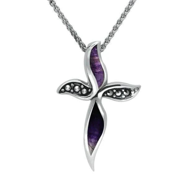 • Sterling Silver Blue John and Marcasite Wavy Cross Necklace - P1309 (MRC-268)
