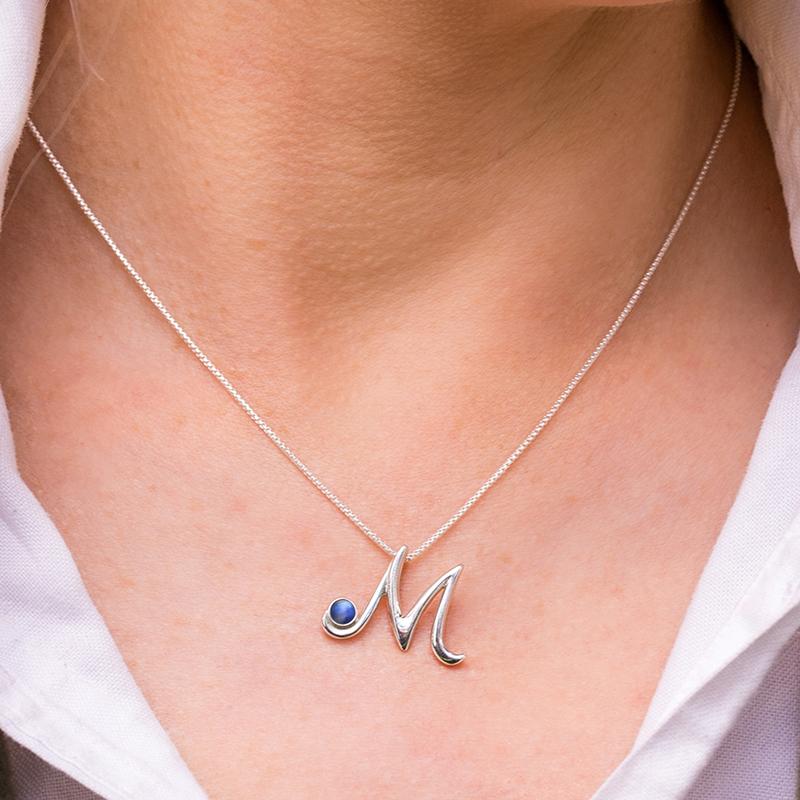 From the new 'Love Letters' collection designed and handcrafted in our very own workshop, this 9ct yellow gold necklace features an initial 'H' with a circular Moonstone. The pendant and stone hang elegantly from a 18 inch 9ct yellow gold chain.
