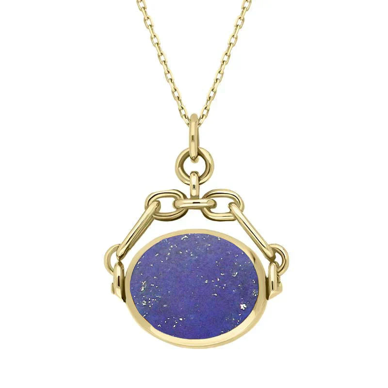 9ct Yellow Gold Whitby Jet Lapis Lazuli Double Sided Swivel Fob Necklace