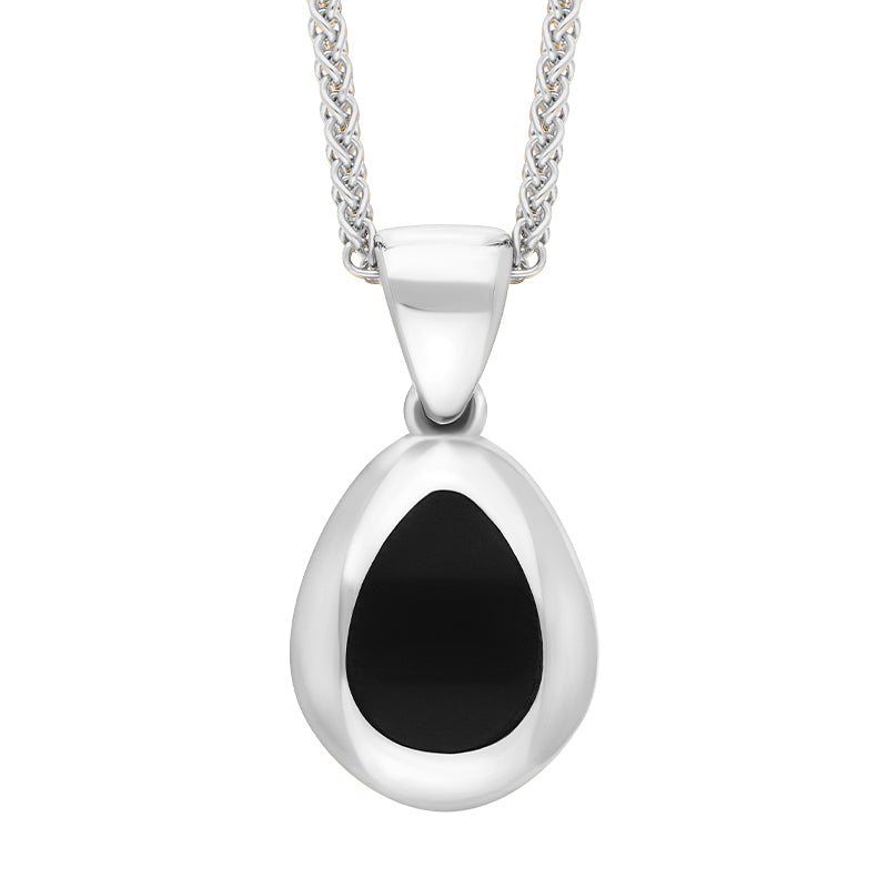 Sterling Silver Whitby Jet Fleur De Lis Pear Shape Necklace, P3645.