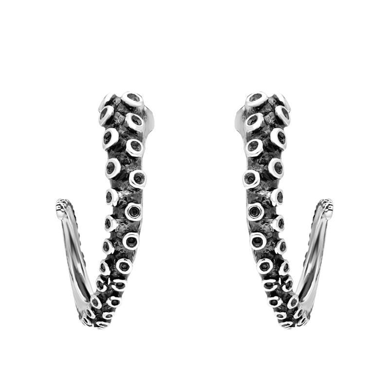 • Sterling Silver Tentacle Hoop Earrings - E2460 (OCN-045)