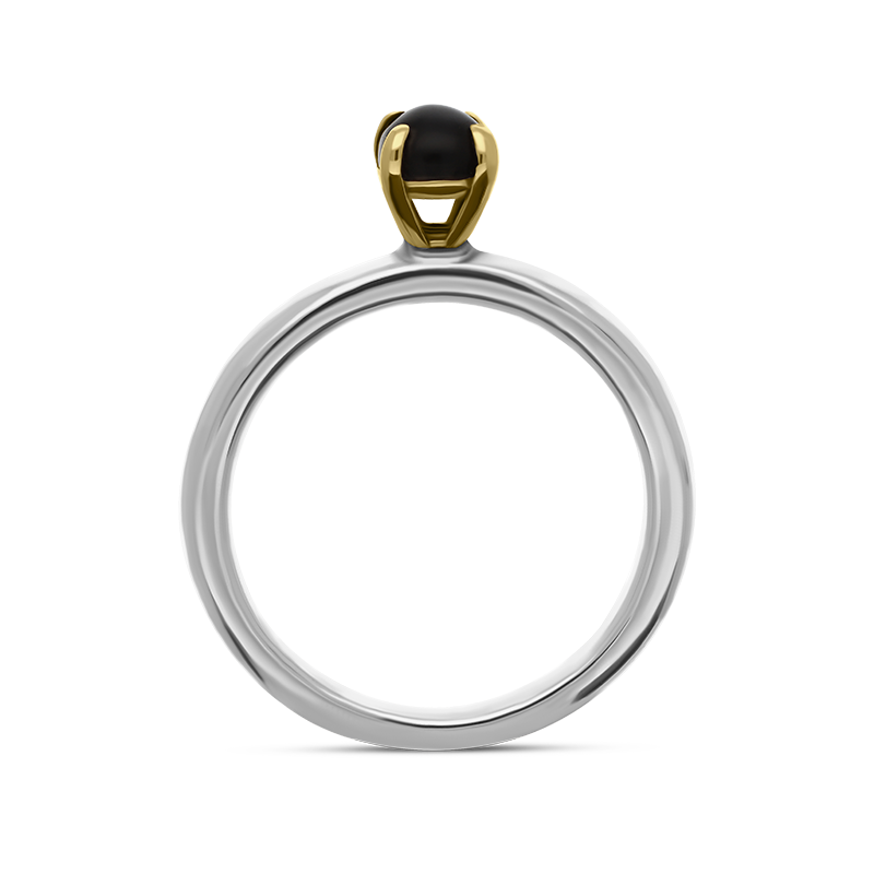 • 9ct Yellow Gold Sterling Silver Whitby Jet Stepping Stones 5mm Round Claw Set Ring D - R572 (SPS-956)