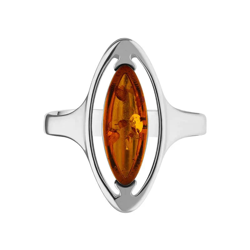 Sterling Silver Baltic Amber Open Marquise Ring. R989