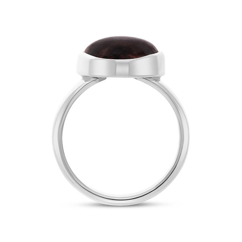 This unique Sterling Silver ring features the finest Blue John gemstone in an abstract pear shape design, creating a stunning contrast against the silver setting making this piece the perfect ring for any gemstone collector.