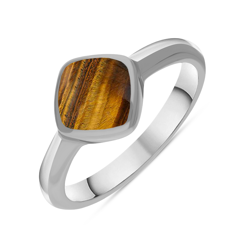 Part of our handmade Heritage jewellery collection, this simple yet stunning ring features a highly polished cabochon of the finest hand carved Tigers Eye, framed into a cushion shaped sterling silver setting on a classic band, making this ring perfect for everyday wear.