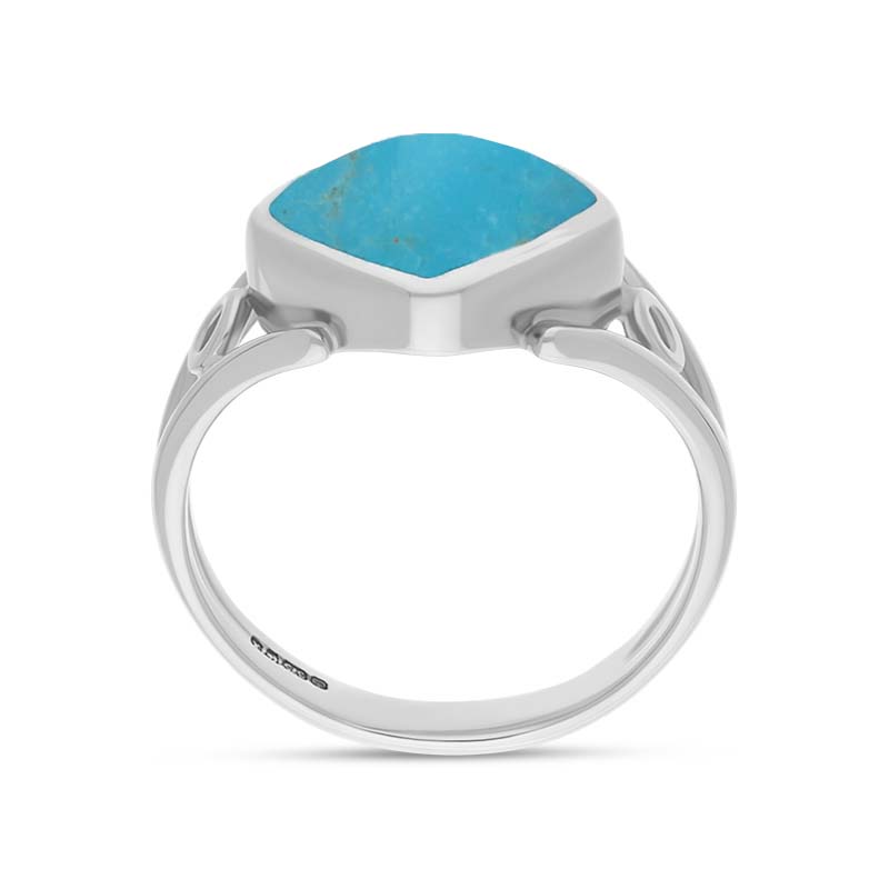 This eye-catching ring features Sterling Silver and Turquoise in a cushion cut design. With its vibrant colour and unique cut, it's sure to make a statement. The ring is handcrafted in our workshop for a timeless and elegant finish.