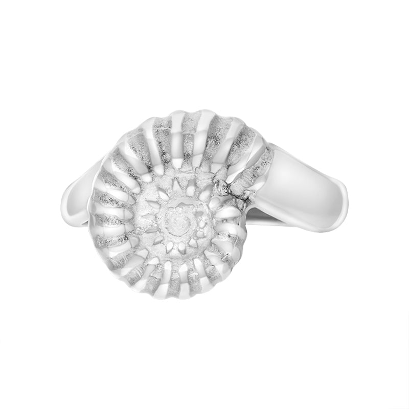 This unique ring features a stunning ammonite design on a twisted shank. Perfect for any nature lover.