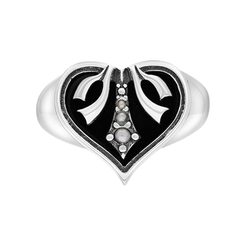Sterling Silver Whitby Jet Freshwater Pearl Victoriana Ring