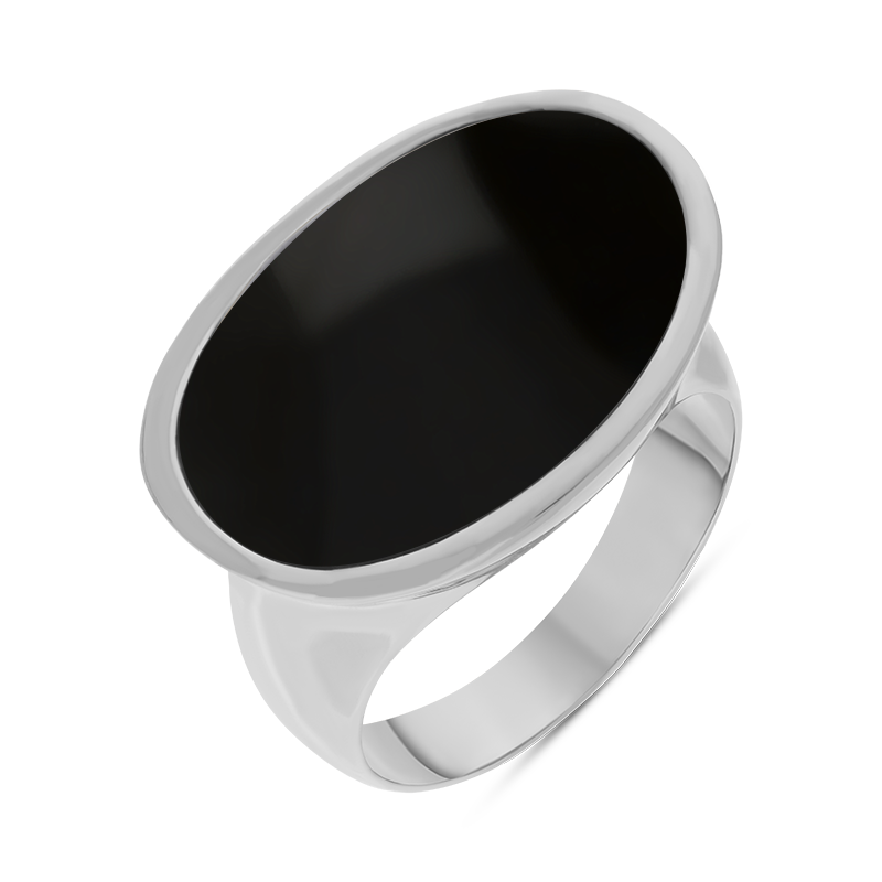 Sterling Silver Whitby Jet Oval Statement Ring, R838.