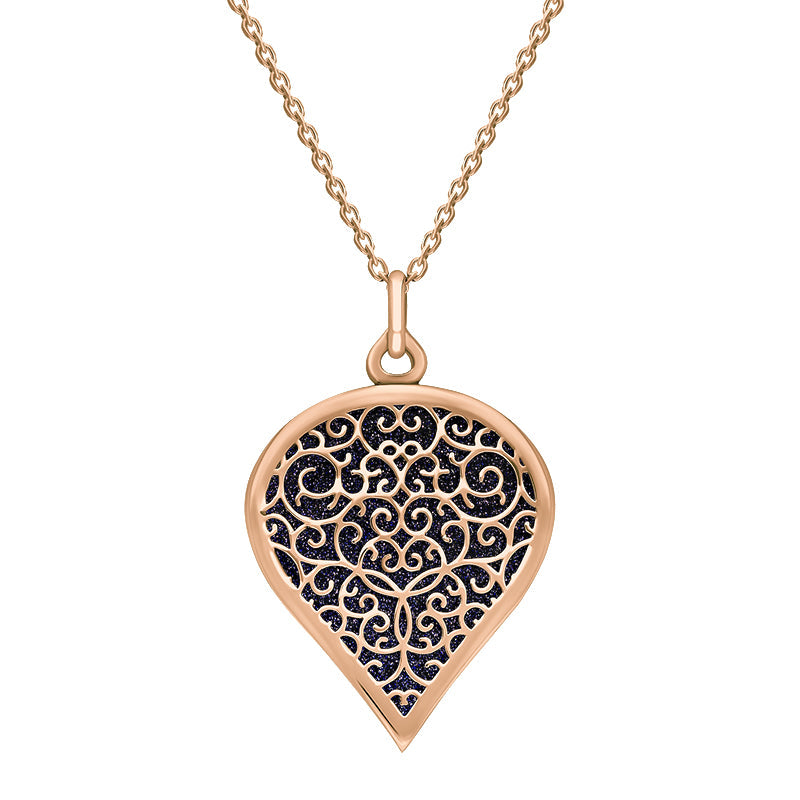 9ct Rose Gold Blue Goldstone Flore Filigree Large Heart Necklace
