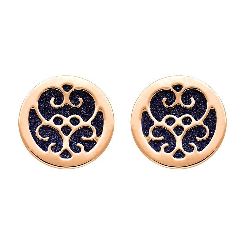 9ct Rose Gold Blue Goldstone Flore Filigree Stud Earrings, E1782