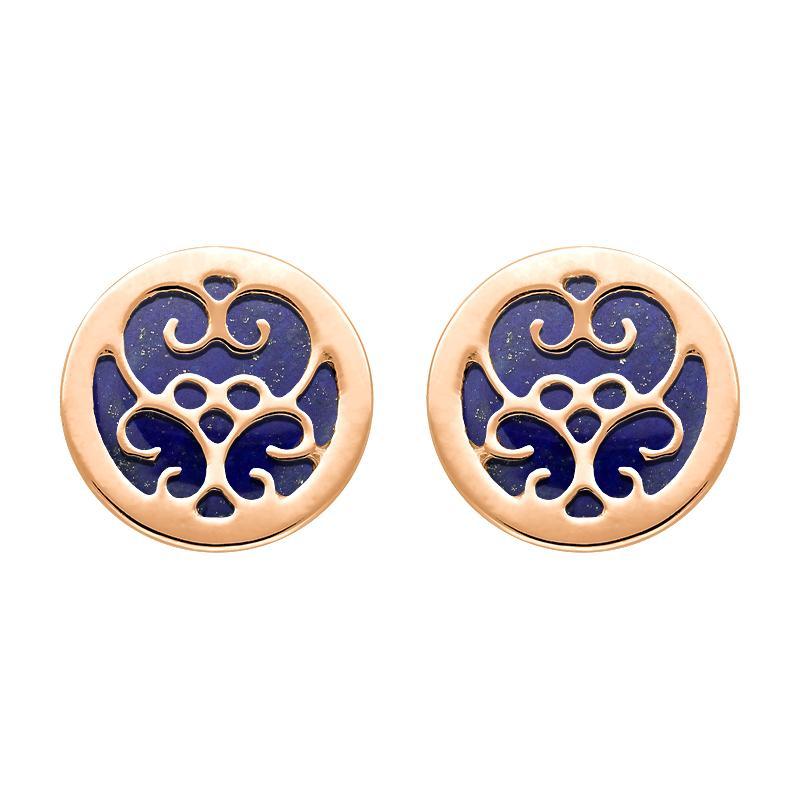 9ct Rose Gold Lapis Lazuli Flore Filigree Stud Earrings, E1782