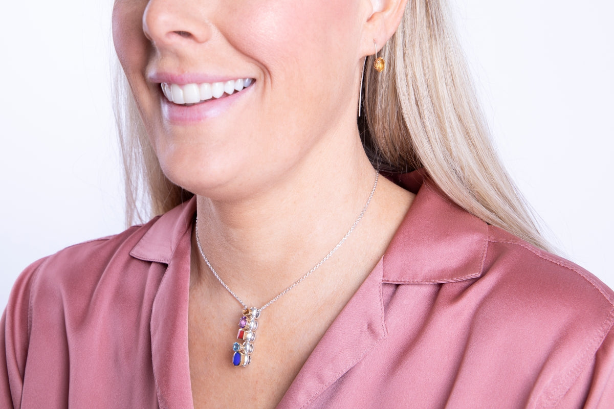 With both smooth and faceted gemstones available in a selection of design shapes, Stepping Stones offer elegant individuality with unlimited and personal design combinations. All the charms can be stacked onto a silver stem pendant, and rings neatly fit together. A range of matching single gemstone drop and stud earrings are also available in the collection to complement each ring and pendant design.