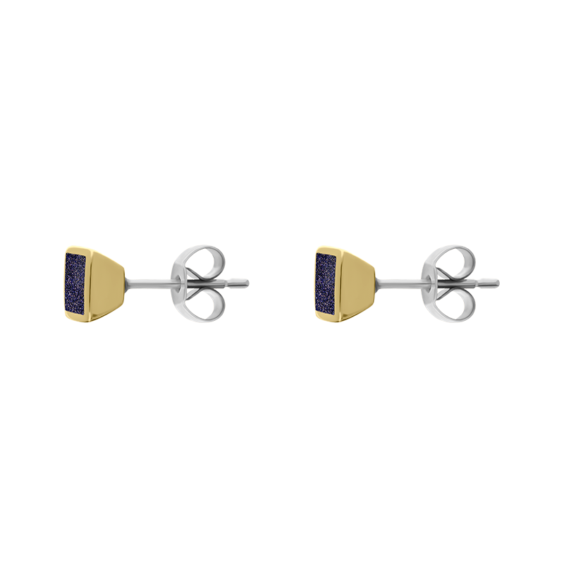 These stud earrings feature highly polished genuine Blue Goldstone set in 9ct yellow gold frames with sterling silver post and butterfly fastenings.