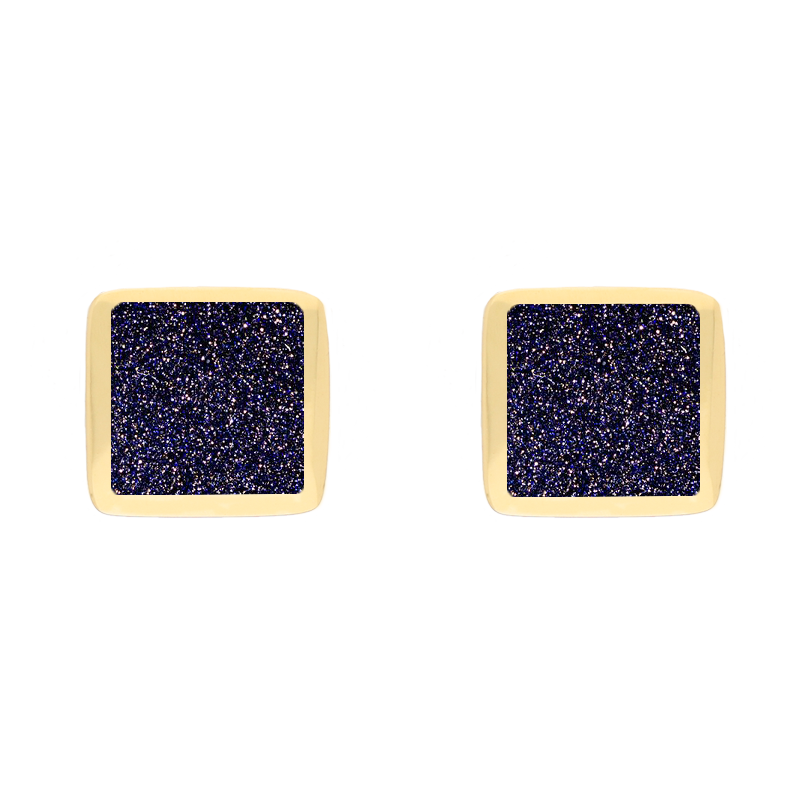 9ct Yellow Gold Sterling Silver Blue Goldstone Stepping Stones Square Stud Earrings
