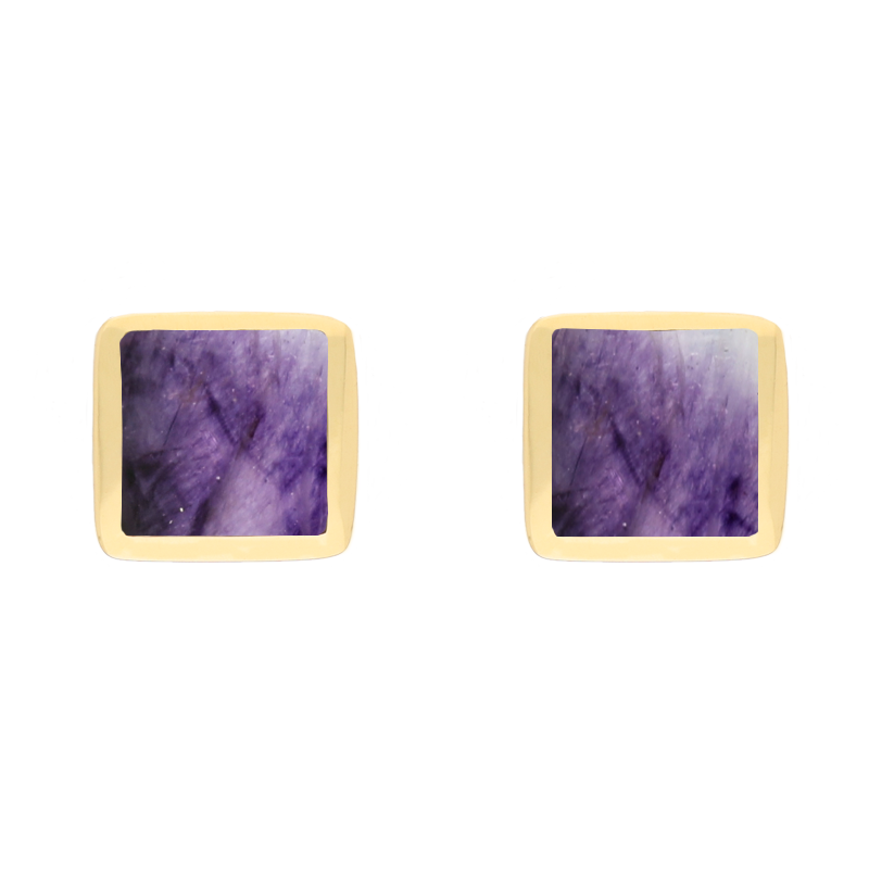 9ct Yellow Gold Sterling Silver Blue John Stepping Stones Square Stud Earrings