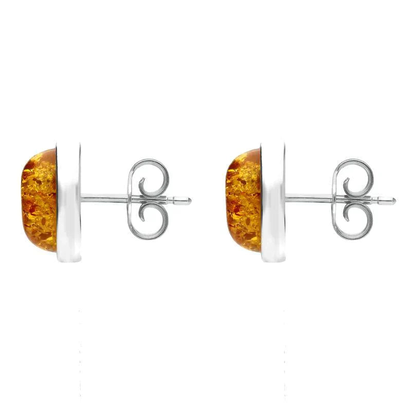 Sterling Silver Amber Framed Oval Stud Earrings, E2350.