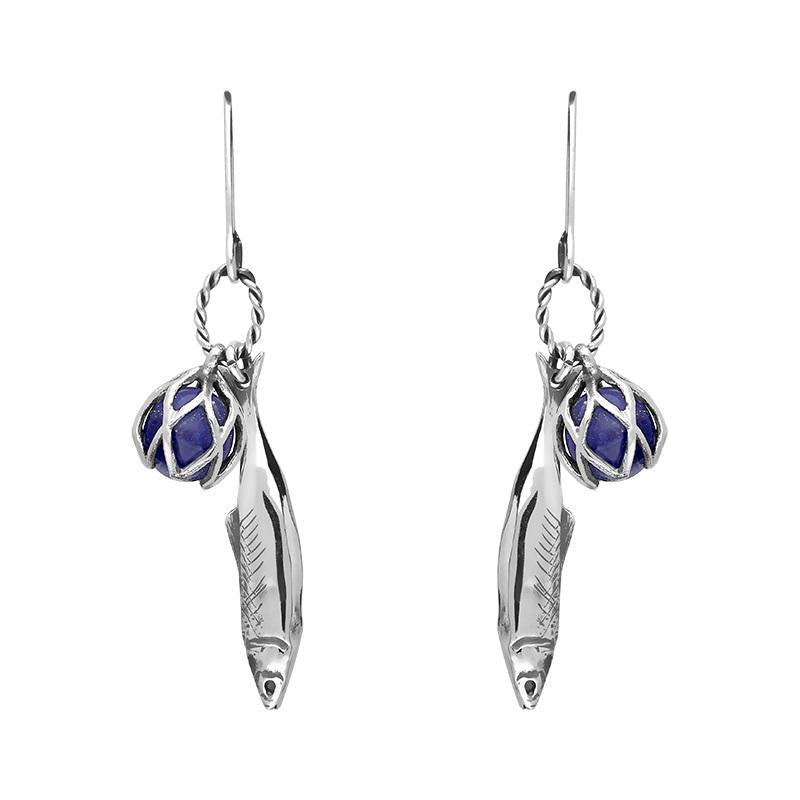 Sterling Silver Emma Stothard Silver Darling Lapis Lazuli Float Charm Hook Earrings