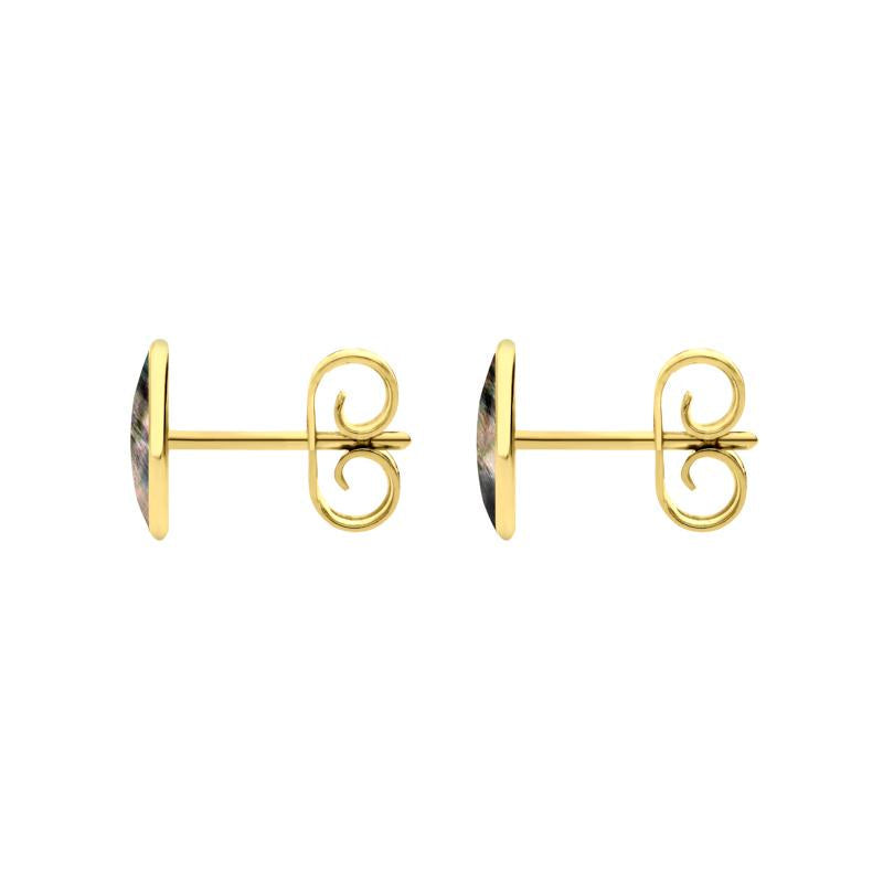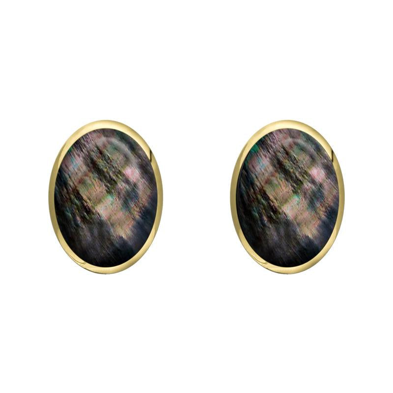 9ct Yellow Gold Dark Mother of Pearl 8 x 6mm Classic Medium Oval Stud Earrings, E006.
