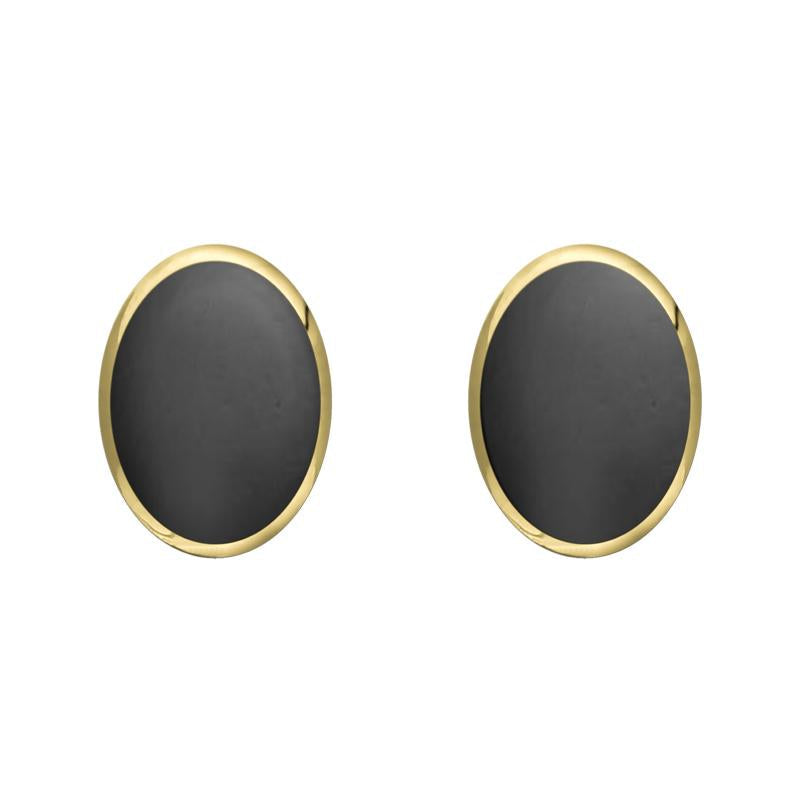 9ct Yellow Gold Hematite 8 x 6mm Classic Medium Oval Stud Earrings