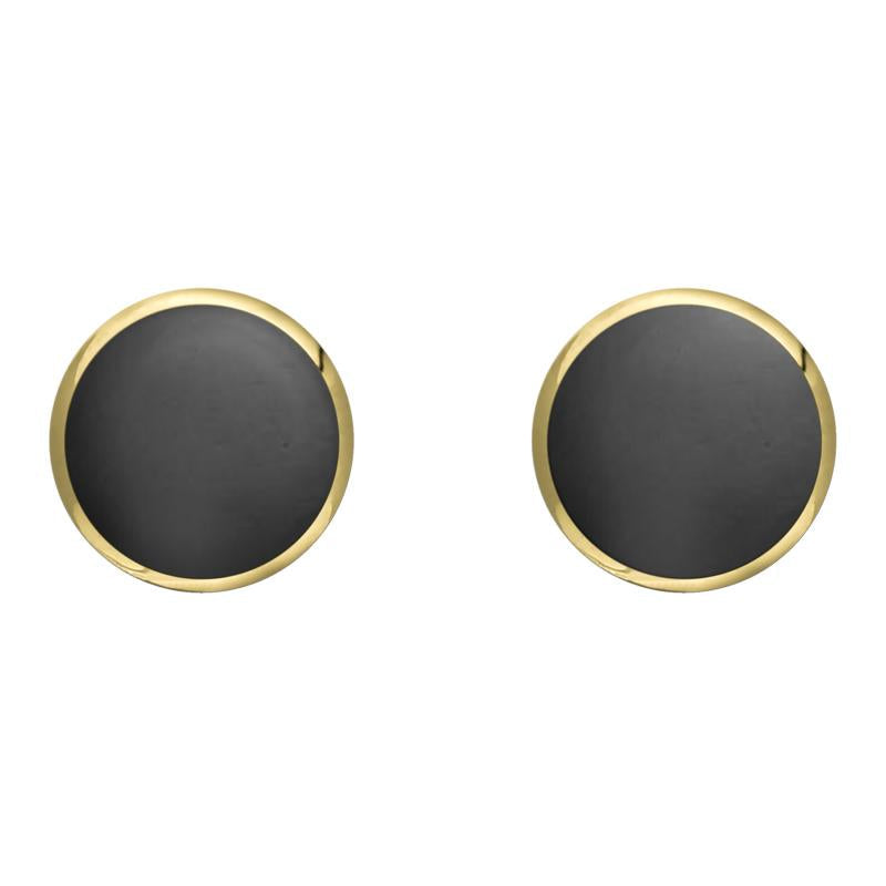 9ct Yellow Gold Hematite 8mm Classic Large Round Stud Earrings, E004.
