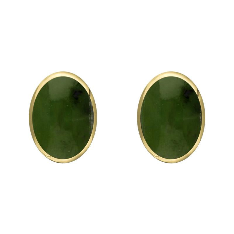 9ct Yellow Gold Jade 8 x 6mm Classic Medium Oval Stud Earrings, E006.