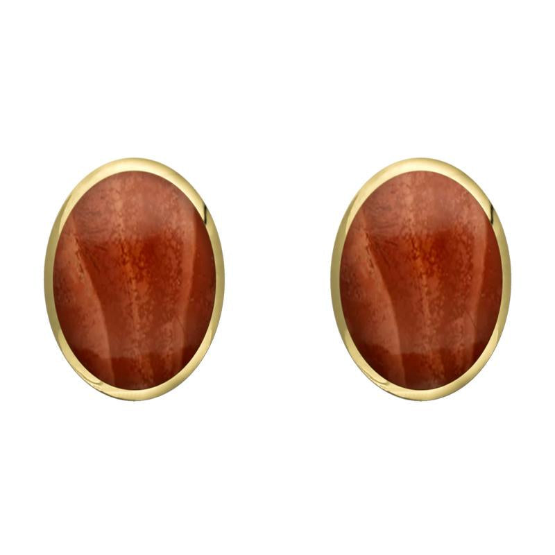 9ct Yellow Gold Jasper 8 x 10mm Classic Large Oval Stud Earrings, E007.